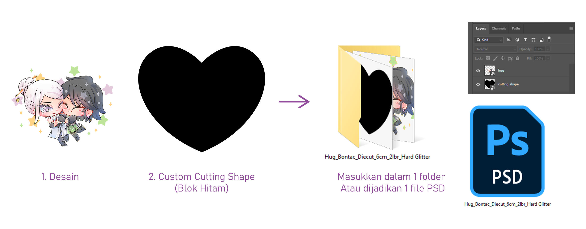 • Untuk print transparan atau linked charm, cek ketentuan file
