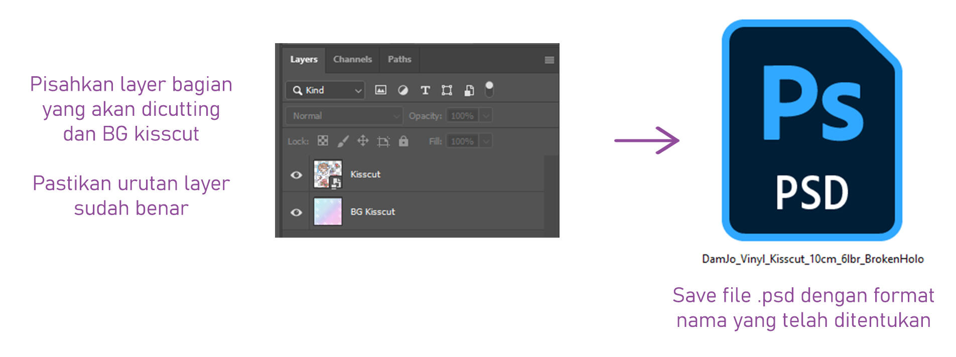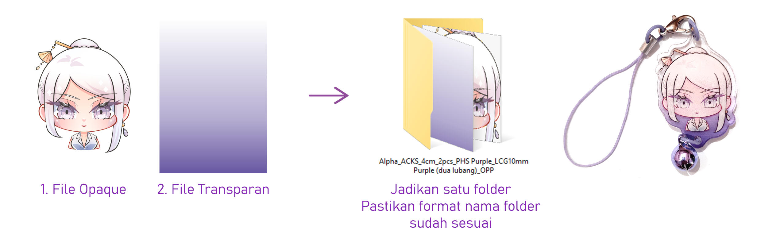 • Untuk print transparan atau linked charm, cek ketentuan file